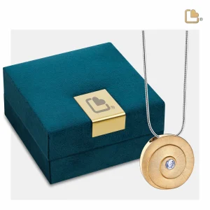 Dieser handgefertigte Ascheanhänger aus vergoldetem 925er Sterlingsilber stammt aus der exklusiven LoveUrns Treasure Kollektion. Mit einer wunderschönen, glänzenden und matten Goldoberfläche und Zirkonia-Stein. Eternity™ Asche Anhänger vergoldet mit Zirkonia Stein & Halskette.