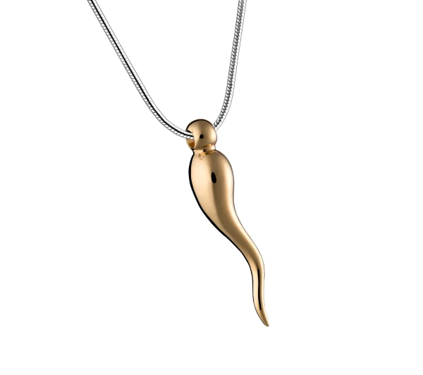 Dieser handgefertigte Ascheanhänger aus vergoldetem 925er Sterlingsilber stammt aus der exklusiven LoveUrns Treasure Kollektion. Er besticht durch seine wunderschöne, glänzende Goldoberfläche. ItalianHorn™ Asche Anhänger vergoldet mit Halskette.