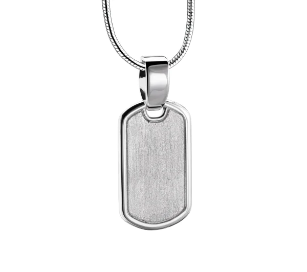 Dieser handgefertigte Ascheanhänger aus 925er Sterlingsilber stammt aus der exklusiven LoveUrns Treasure Kollektion. Mit einer wunderschönen, glänzenden und matten Silberoberfläche. LoveTag™ Asche Anhänger Silber mit Halskette.