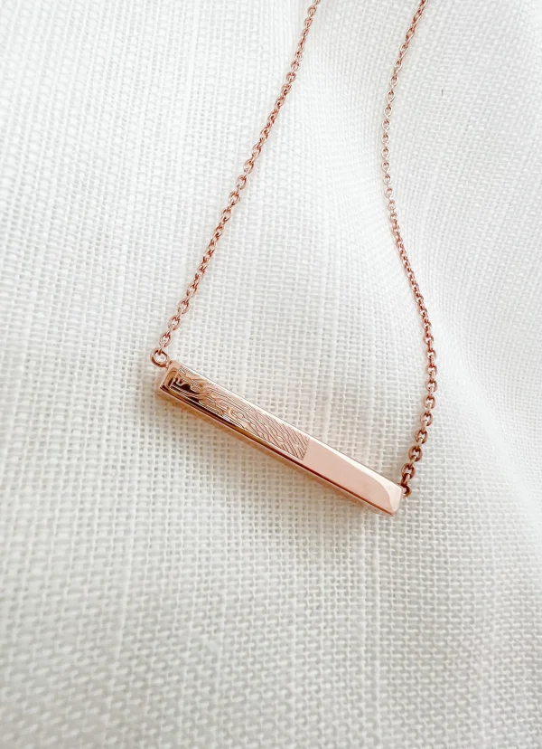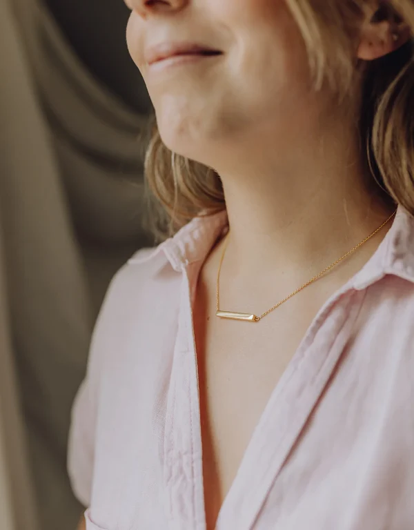 The Bar ist ein Anhänger mit Kette. Sein schlichtes und zeitloses Design macht dieses Schmuckstück zu einem echten Klassiker.