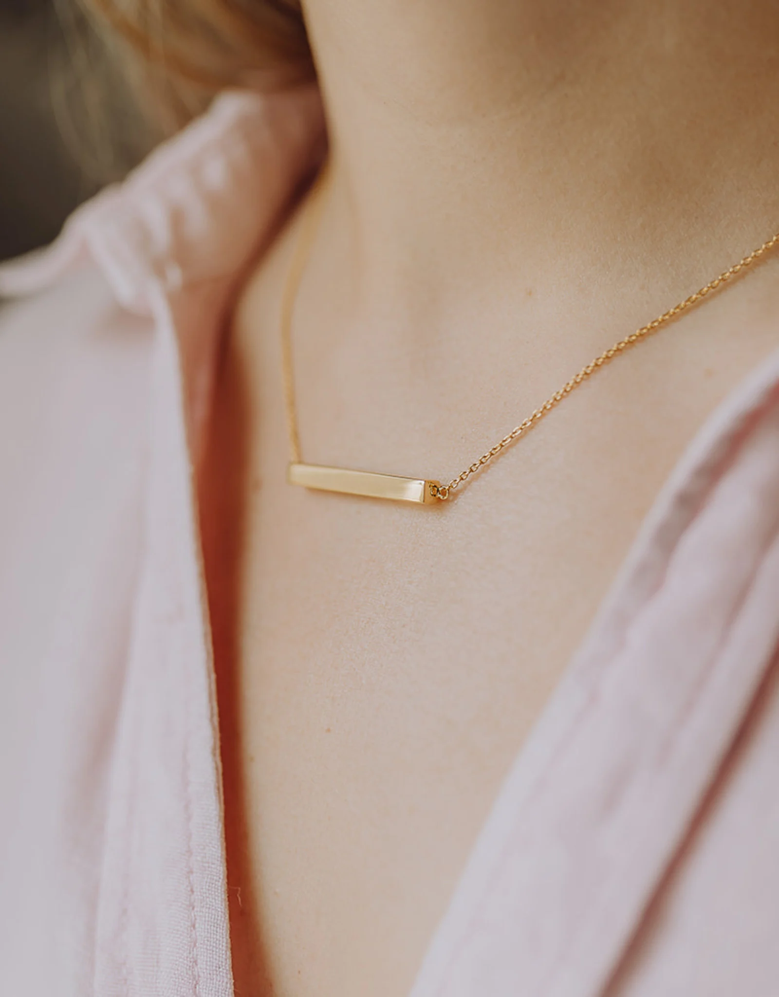 The Bar ist ein Anhänger mit Kette. Sein schlichtes und zeitloses Design macht dieses Schmuckstück zu einem echten Klassiker.