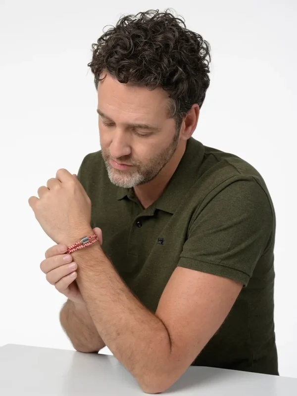 Herren-Aschearmband Cord Rot-Weiß & Edelstahl