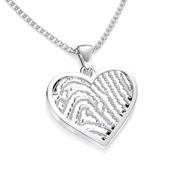 Alle Fingerabdruck-Schmuckstücke sind in 925 Silber, 14- und 18-karätigem Weiß-, Gelb- und Roségold sowie vergoldet* erhältlich. Sie sind mit offenen oder geschlossenen Fingerabdrücken erhältlich. Die Schmuckstücke sind auch mit einem Harzfach für eine kleine Menge Asche oder Haare verfügbar.