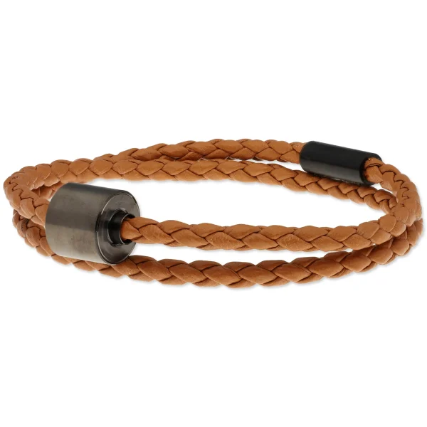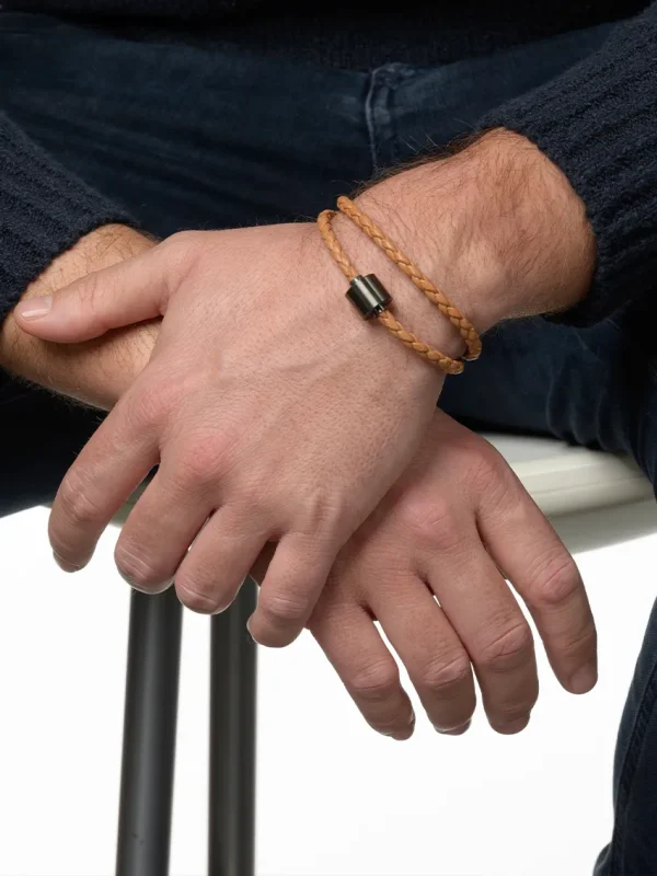Herren-Aschearmband geflochtenes leder Cognac – Black Edition