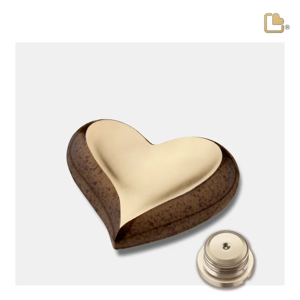 Herz Mini-Urn gesprenkelt Kastanienbraun & gebürstet Gold