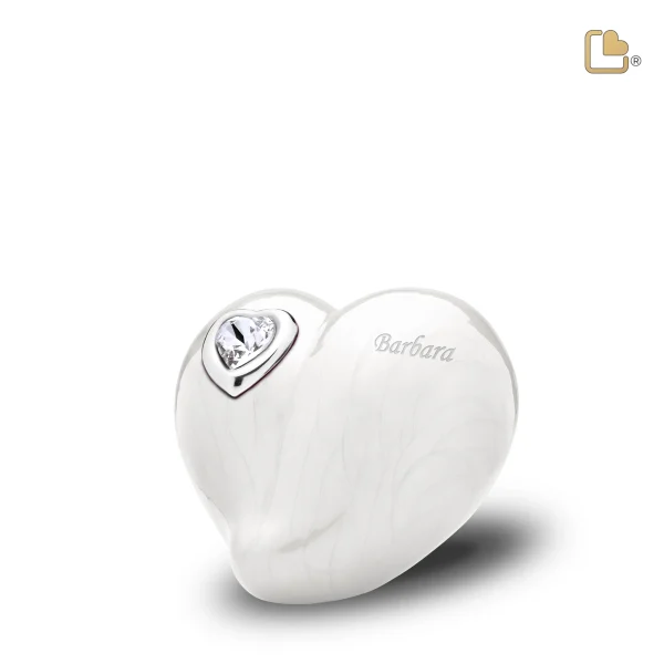 LoveHeart™ Mini-Urne Herz Weiß mit Kristall