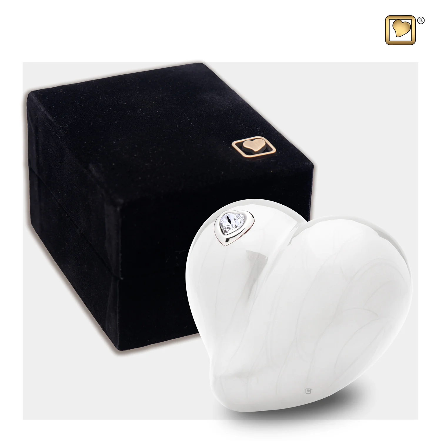 LoveHeart™ Mini-Urne Herz Weiß mit Kristall