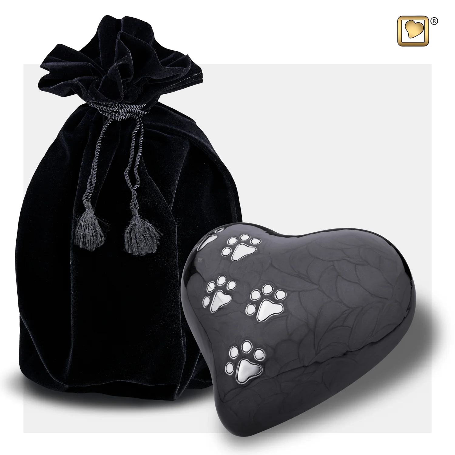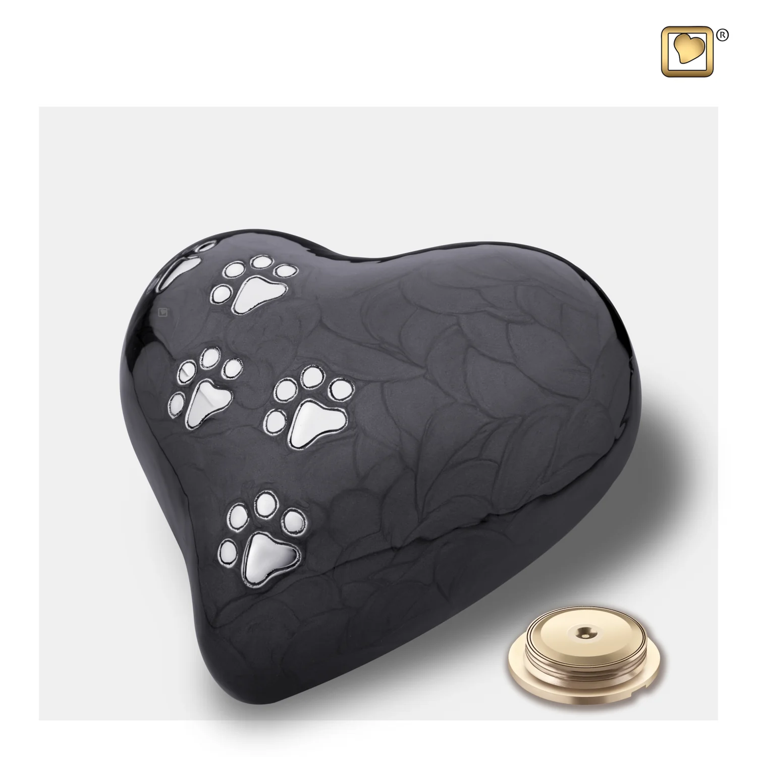 Handgefertigte herzförmige Urne aus Messing mit Pfotenabdrücke, der den Lebensweg Ihres Haustieres symbolisiert.Die Suche nach einer schönen Urne für Ihr Haustier kann eine emotionale Angelegenheit sein. Mit unserer Auswahl an modernen Urnen hoffen wir, dass Sie die perfekte letzte Ruhestätte für Ihr geliebtes Haustier finden.Diese handgefertigte, individuell gestaltete herzförmige Urne symbolisiert Ihre ewige Liebe zu Ihrem geliebten Haustier. Die Tierurne ist eine handgefertigte und handbemalte Herzskulptur, die mit einer Spur von Pfotenabdrücken verziert ist, die den gemeinsamen Lebensweg Ihres Haustieres mit Ihnen symbolisieren.