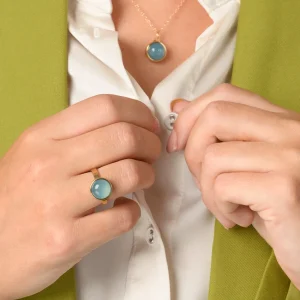 Asche Anhänger / Ascheschmuck Blauer Achat vergoldet