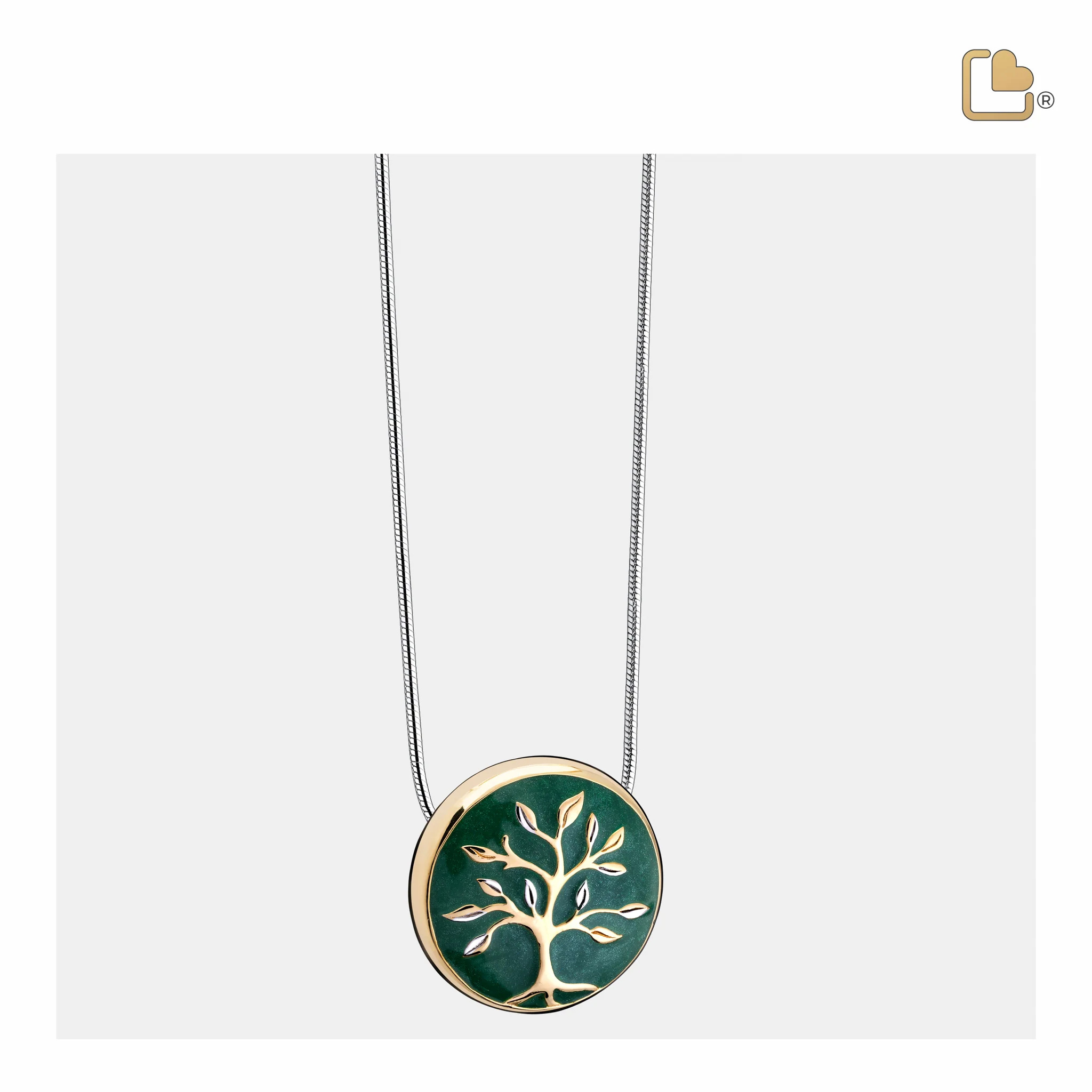 Dieser handgefertigte Ascheanhänger aus vergoldetem 925er Sterlingsilber stammt aus der exklusiven LoveUrns Treasure Kollektion. Mit einer wunderschönen, glänzenden Gold- und Grünlackierung. Das robuste, rhodinierte Silber macht diesen Ascheanhänger besonders widerstandsfähig, oxidationsbeständig und unempfindlich gegenüber Witterungseinflüssen. So behält er seinen Glanz und seine Eleganz lange. Der Anhänger bietet Platz für eine symbolische Menge Asche oder Haare. Er lässt sich leicht befüllen und mit einer Inbusschraube auf der Rückseite einfach verschließen.