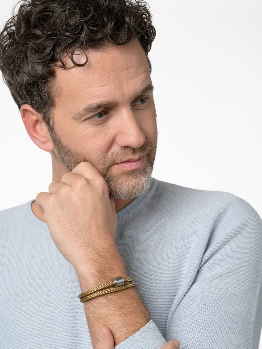 Herren-Aschearmband Cord Goldsand & Edelstahl