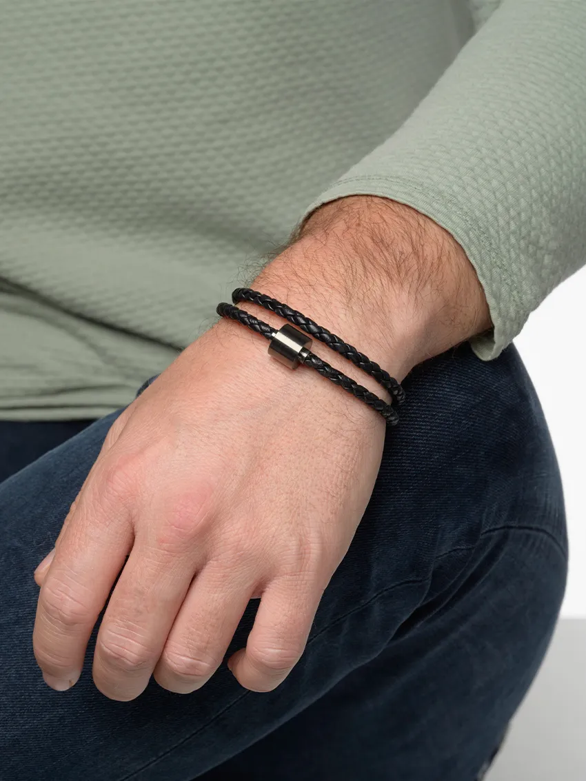 Herren-Aschearmband geflochtenes leder Schwarz - Black Edition