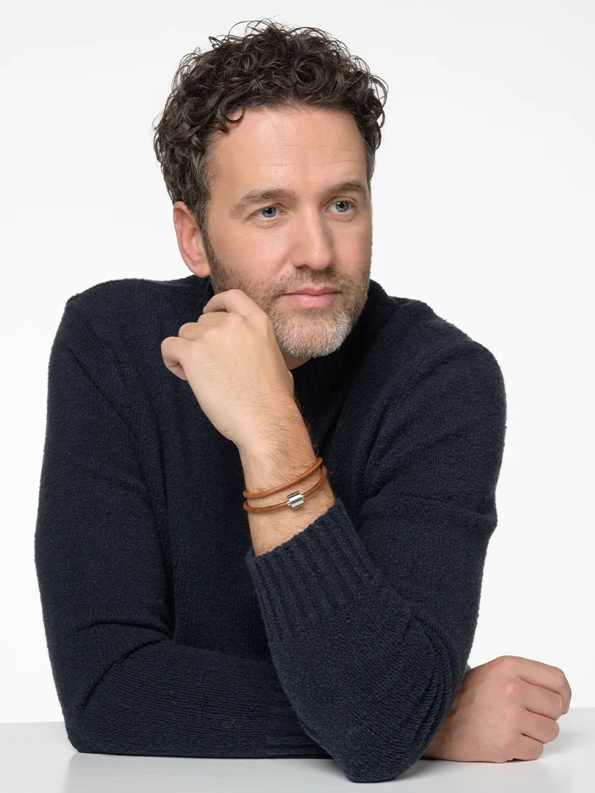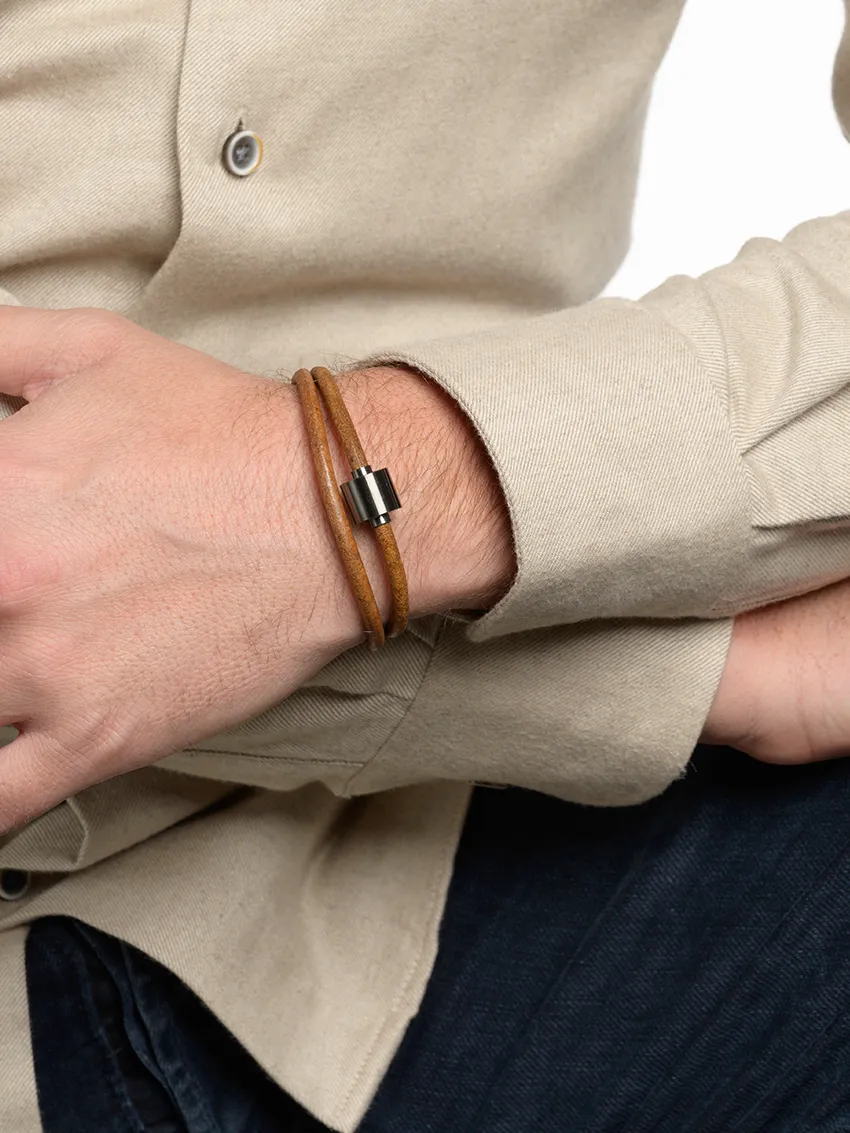 Herren-Aschearmband Glattleder Cognac & Edelstahl