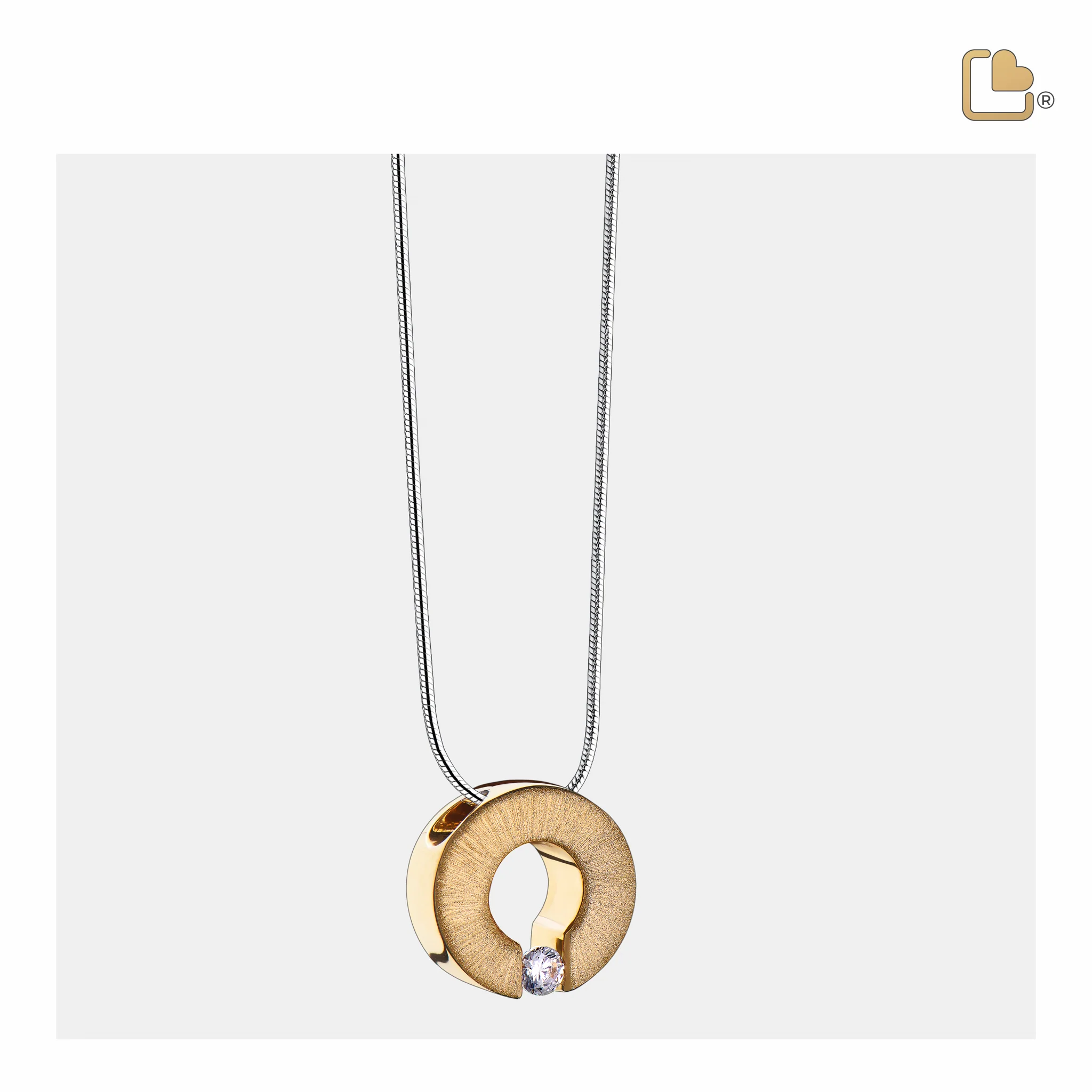 Dieser handgefertigte Ascheanhänger aus vergoldetem 925er Sterlingsilber stammt aus der exklusiven LoveUrns Treasure Kollektion. Mit einer wunderschönen, glänzenden und matten Goldoberfläche und Zirkonia-Stein.Das robuste, rhodinierte Silber macht diesen Ascheanhänger besonders widerstandsfähig, oxidationsbeständig und unempfindlich gegenüber Witterungseinflüssen. So behält er seinen Glanz und seine Eleganz lange. Der Anhänger bietet Platz für eine symbolische Menge Asche oder Haare. Er lässt sich leicht befüllen und mit einer Inbusschraube auf der Rückseite einfach verschließen.