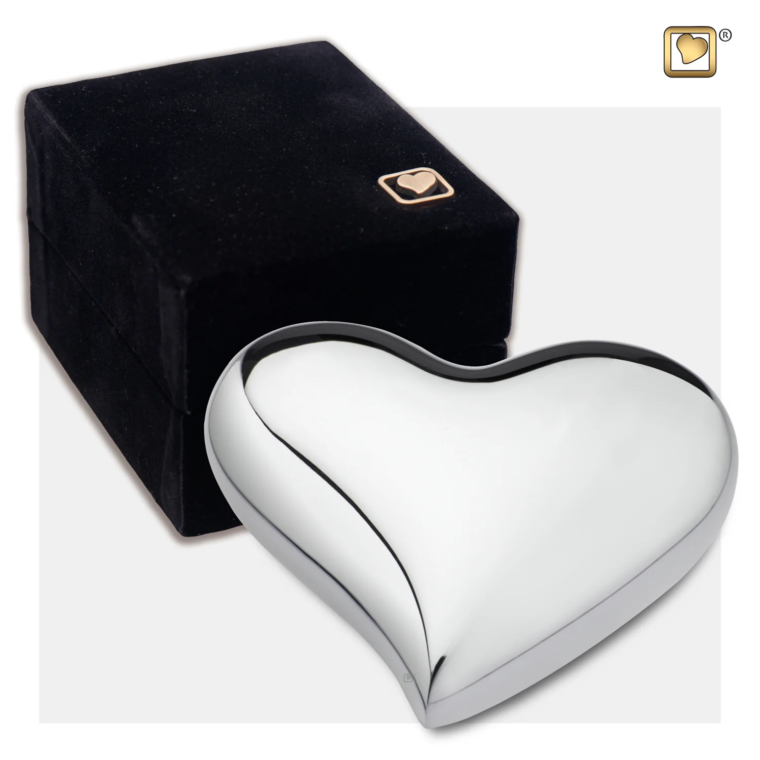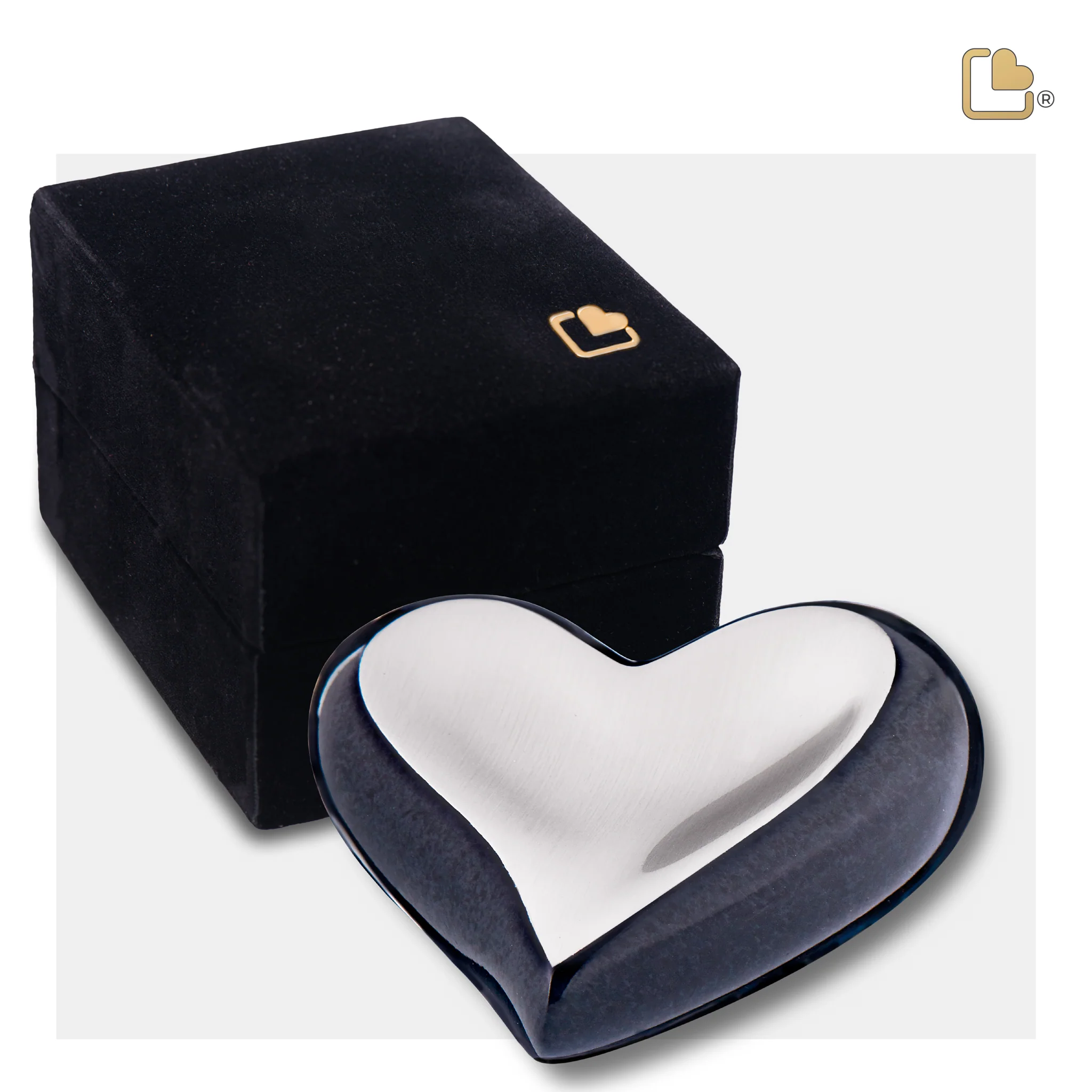 Die LoveHeart™ Mini-Urne in Herzform besticht sofort durch ihren perlmuttweißen Farbton, der die gesamte Oberfläche bedeckt. Dieser samtige Glanz schimmert im Licht und offenbart feine Pinselstriche, die die handbemalte Oberfläche hervorheben.Anders als herkömmliche Urnenformen ist diese Mini-Urne aus Messing in Form eines runden Herzens gegossen. Sie scheint der Schwerkraft zu trotzen, indem sie auf ihrer unteren Wölbung ruht und so aus jedem Blickwinkel sichtbar ist.Ein wunderschöner Kristall ziert die obere linke Ecke der Urne, während die obere rechte Ecke (optional) Platz für eine persönliche Gravur auf der Herzform bietet.Diese einzigartige Urne bietet eine besondere Möglichkeit, die Asche Ihrer Lieben aufzubewahren.