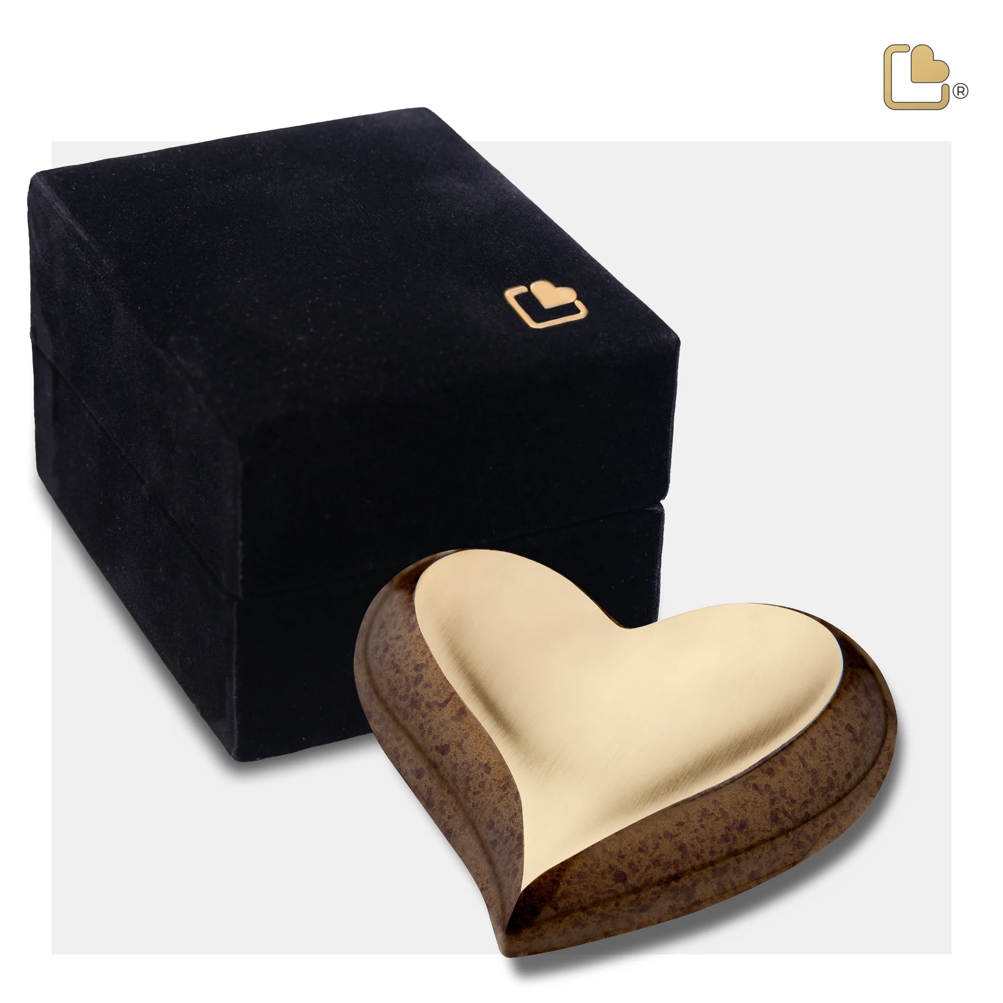 Herz Mini-Urn Kastanienbraun & gebürstet Gold